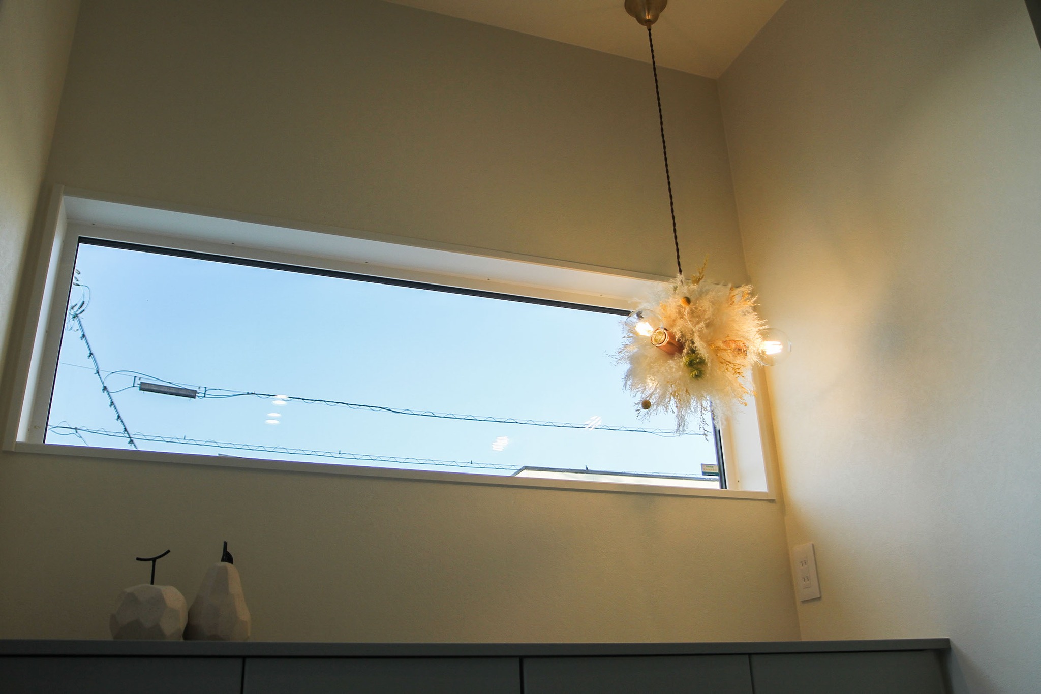 外が暗くなってからペンダントライトを点灯すると幻想的な空間が広がります。