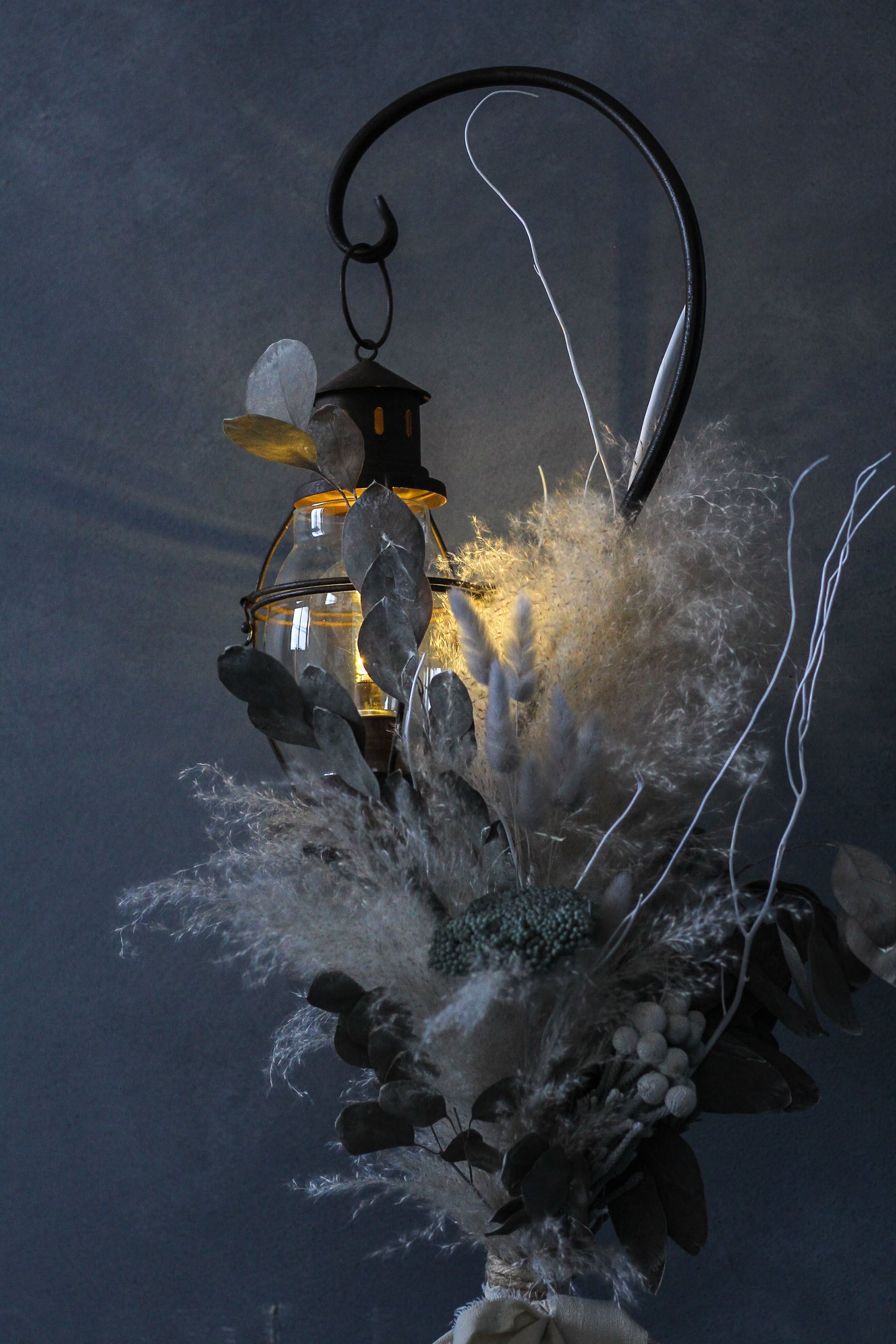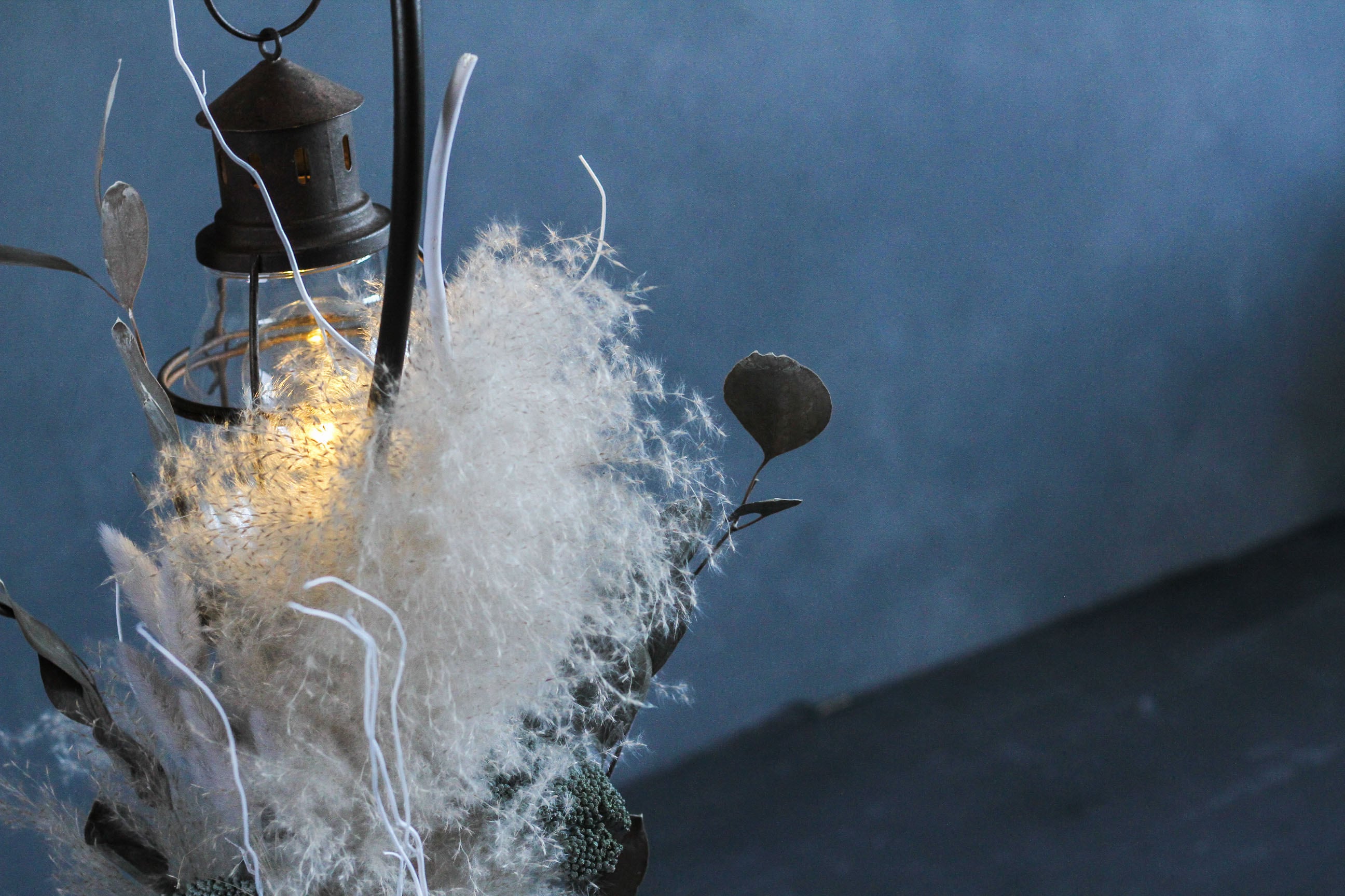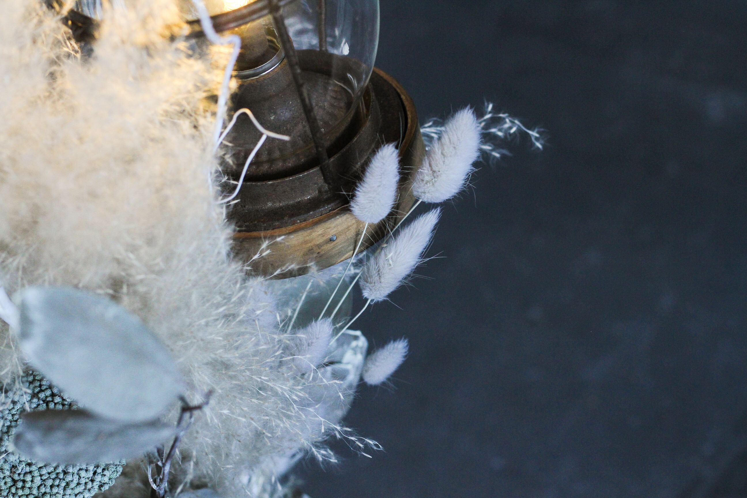 ふわふわのビックテールリードをベースに、アキレア・シルバーブルニア・ポプルスユーカリなどナチュラルな花材を組み合わせたシックなデザインに仕上がっています。