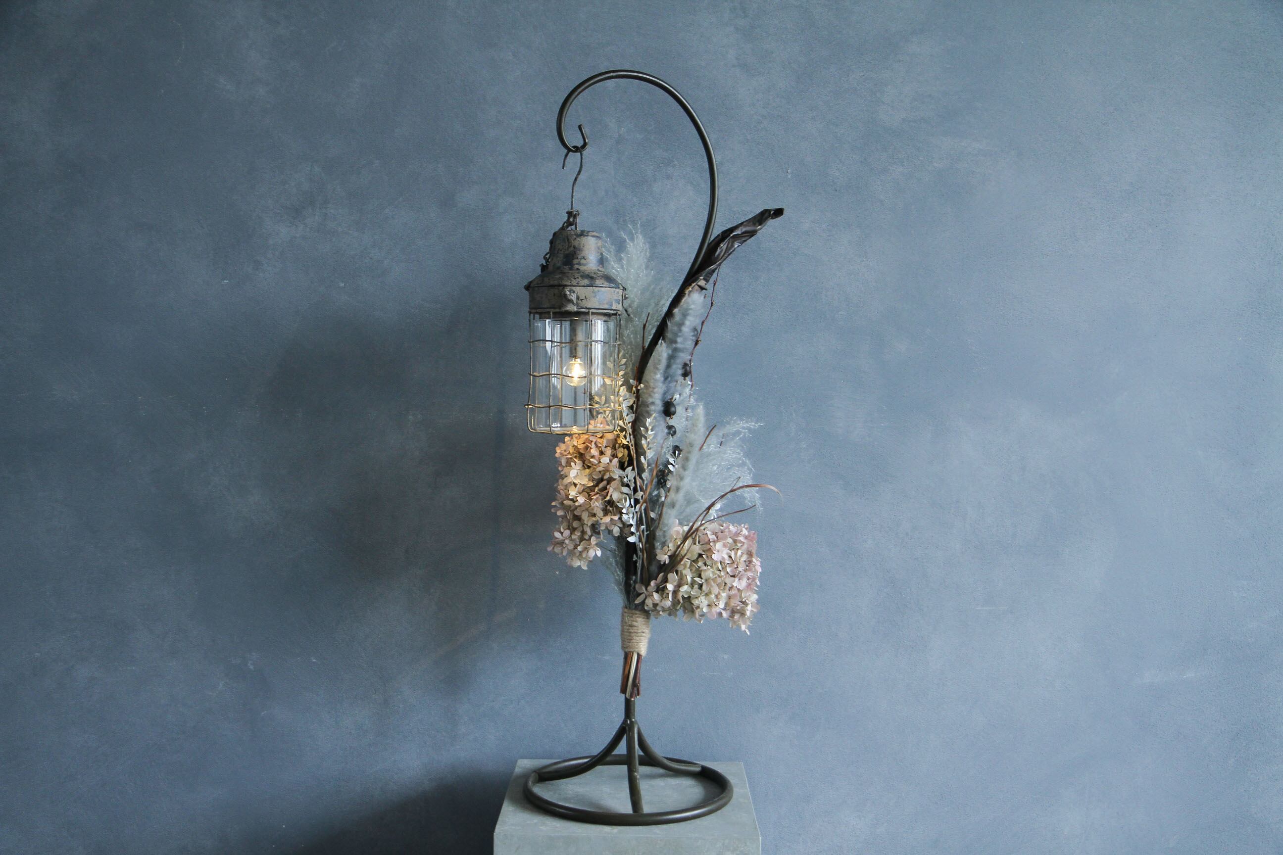 ストレチアリーフをメインにしたシンプルで上品なデザインのフック船長。高さがしっかりあるため、置き型ランプの中でも目を引くデザインです。