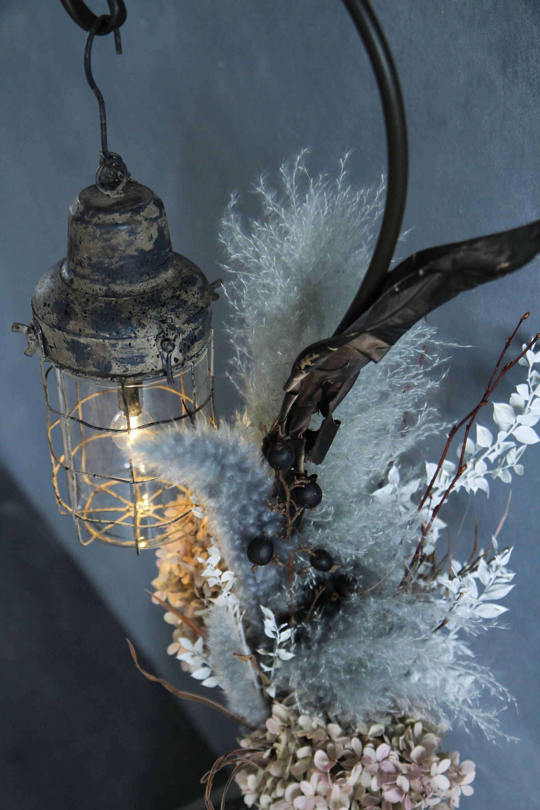 【送料無料】品番ST-30(フック船長) アレカヤシ、ブラックベリー、ストレチアリーフ(シャンデリア&ドライフラワー専門店 / 照明・インテリア)